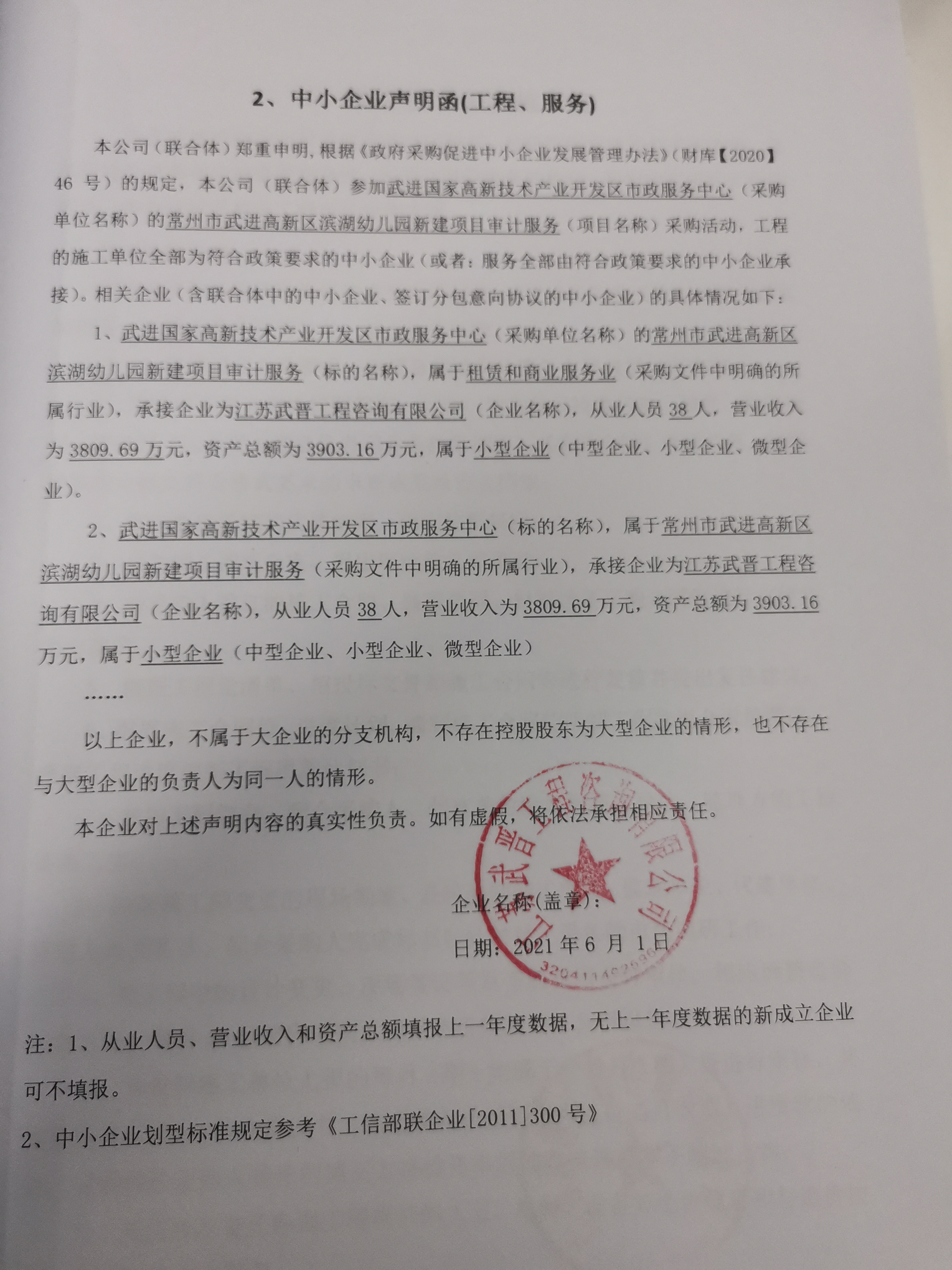 常州市武进高新区滨湖幼儿园新建项目审计服务中标(成交)结果公告