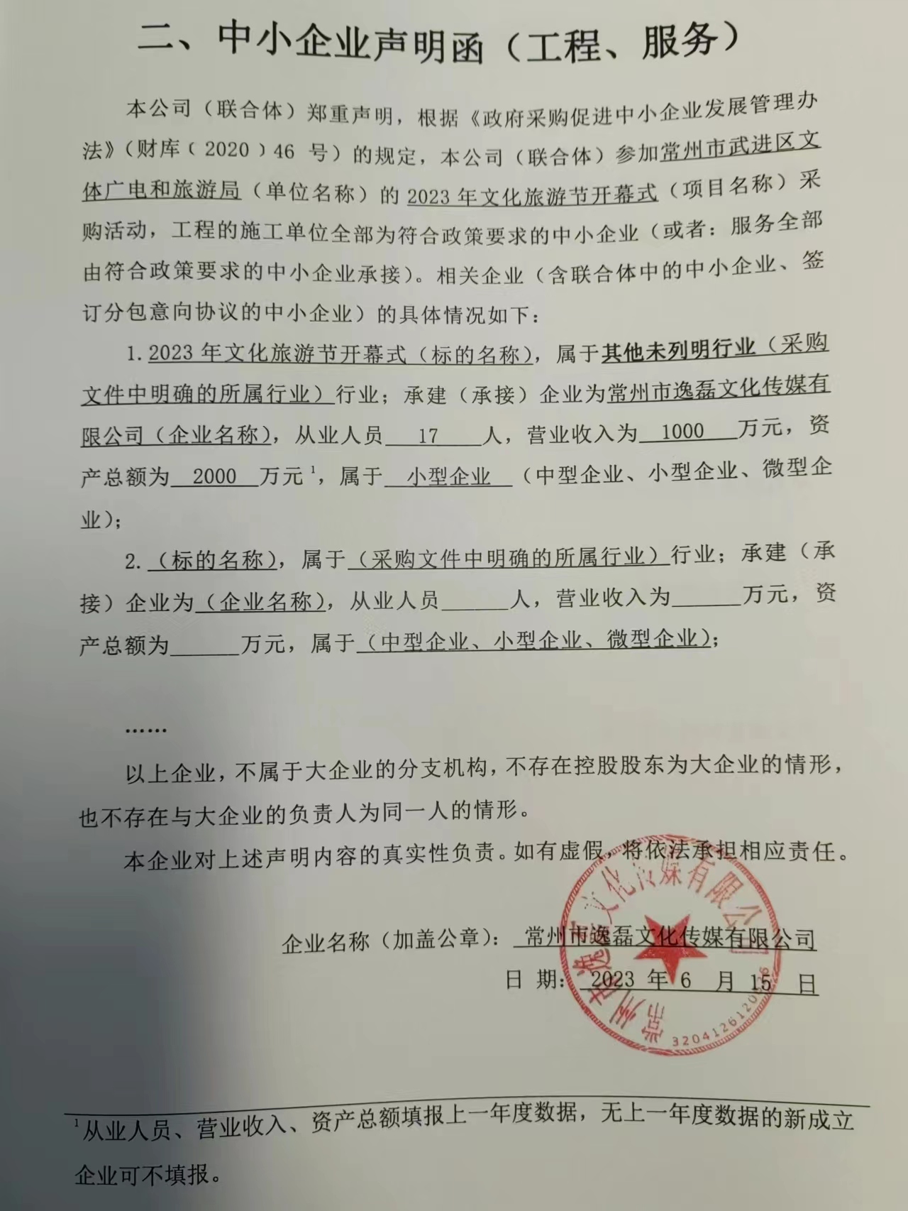 2.中小企业声明函